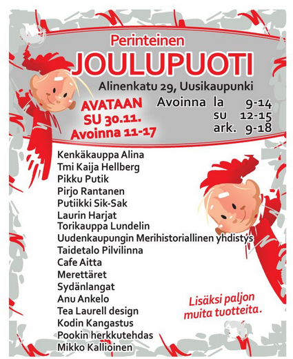 Kortteja myydään merellisessä illassa, Wanhanajan joulumarkkinoilla 30.11. sekä samaan aikaan avautuvassa Joulupuodissa Uudessakaupungissa. Kortteja myydään myös Sannin paperi- ja kirja -kaupassa.